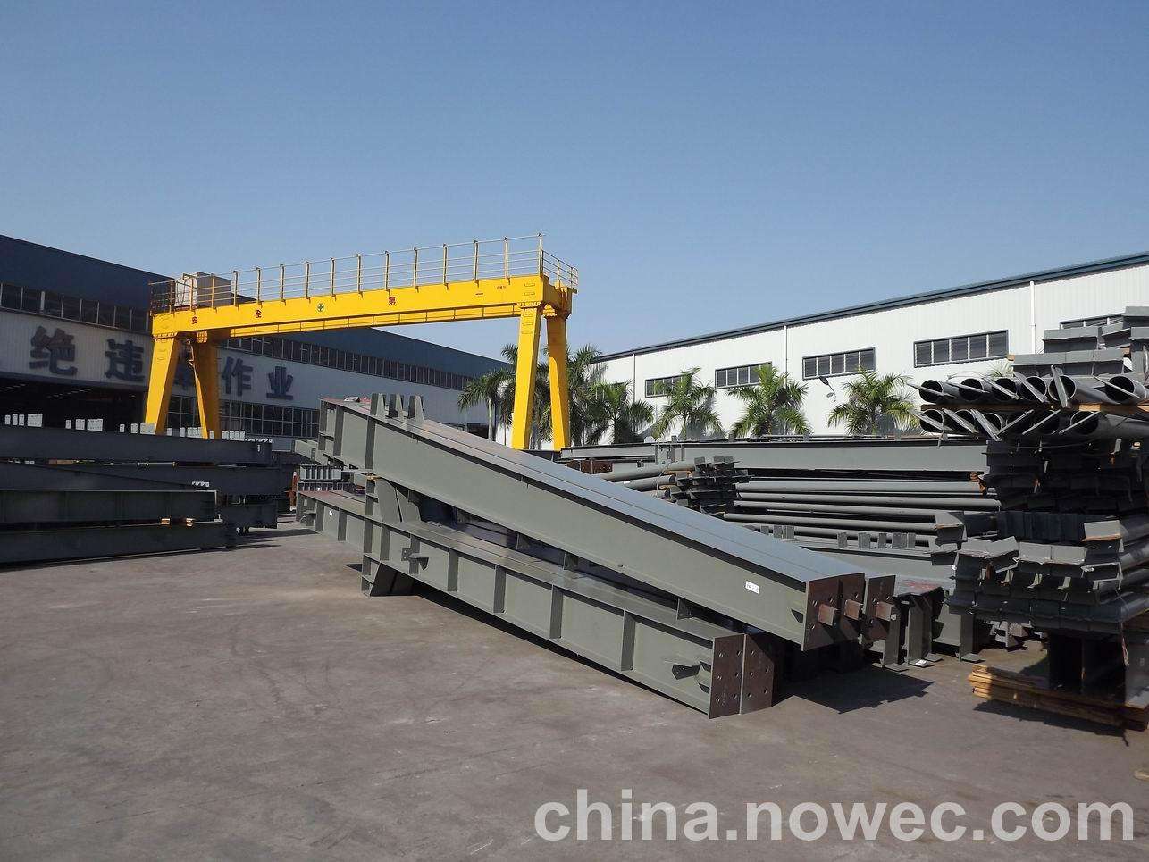 条状单元一般沿长跨方向分割,其宽度约为1~3个网格,其长度为l2或l2/2(l2为短跨跨距)。块状单元一般沿高平网架平面纵横向分割成矩形或正方形单元。每个单元的重量以现有起重机能胜任为准。条(块)与条(块)之间可以直接拼装,也可空一网格在高空拼装。由于条(块)状单元是在地面拼装,因而高空作业量较高空散装法大为减少,拼装支架也减少很多,又能充分利用现有起重设备,故较经济。这种安装方法适用于分割后网架的钢度和受力状况改变较小的各类中小型网架,如两向正交正放四角锥、正放抽空四角锥等网架。